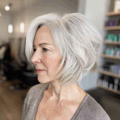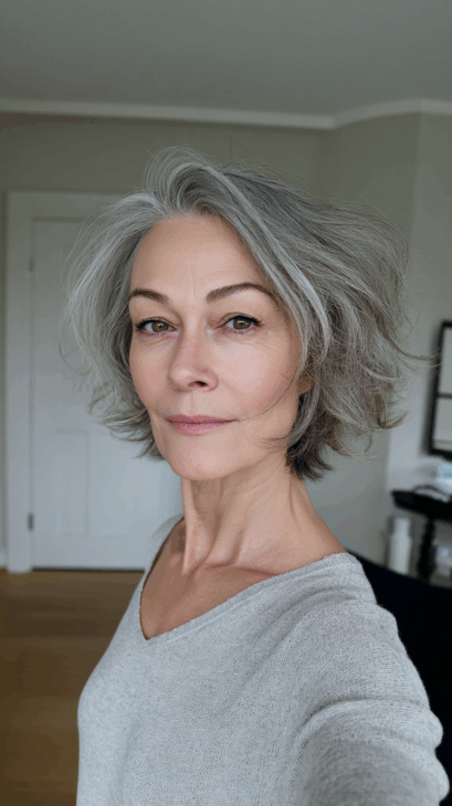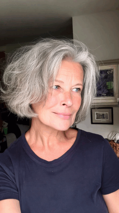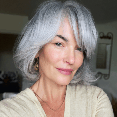 If you’re embracing your natural silver, this is a great way to make it feel modern and sharp without being harsh.