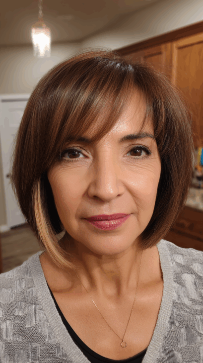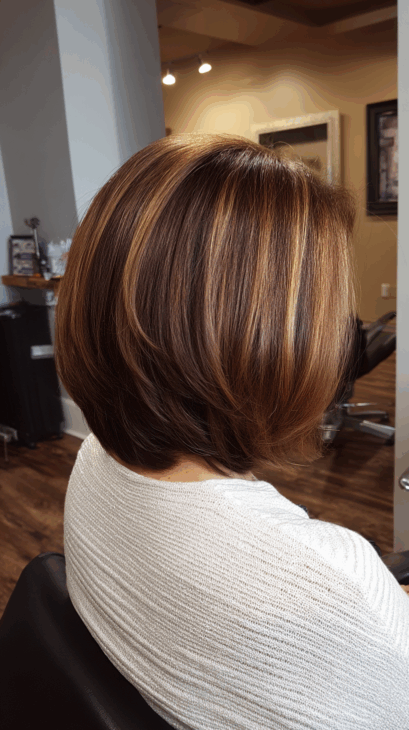 I’m obsessed with how much body this layered bob brings. The soft outward flip and rich brunette tone give this style a glamorous, bouncy vibe.