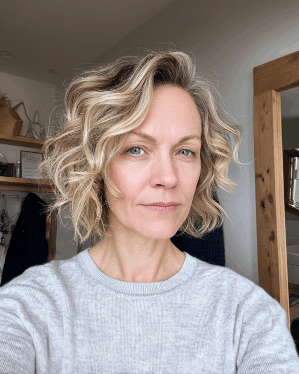 If you’re looking for a cut that feels youthful but low-maintenance, this textured bob with curtain bangs is it.