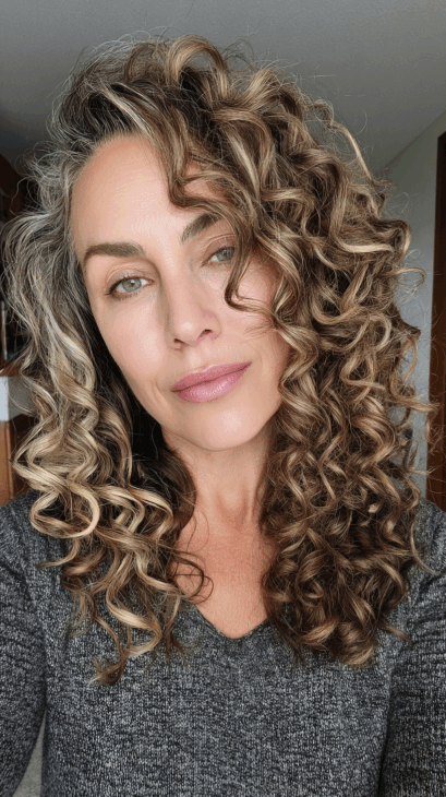 If you’re embracing your natural gray or adding subtle highlights, it gives the curls even more dimension—something I always recommend for a little extra pop!
