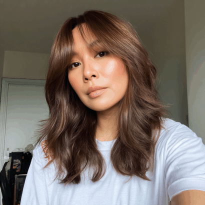 I love this shade for brunettes who want to add brightness without losing richness.