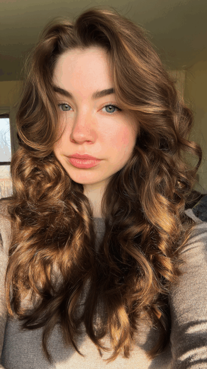 These soft, bouncy curls show off the dimension of golden brown perfectly. The highlights catch the light and create that sunkissed effect that feels so fresh and effortless.