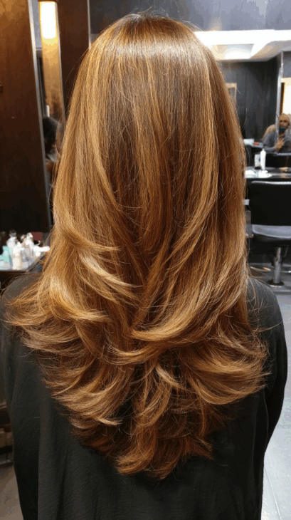 The soft layers frame the face beautifully, and the golden tones add warmth to the complexion. I love creating looks like this because they feel modern but still easy to style.