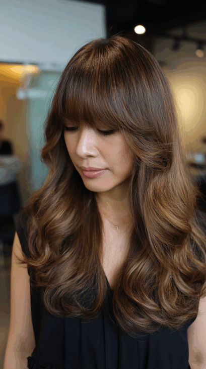 This silky, golden brown hair has the perfect balance of warmth and depth. The color catches the light in such a natural way, giving that fresh-from-the-salon glow.