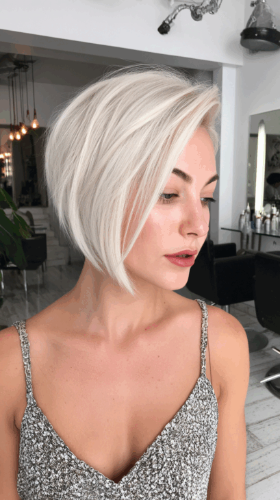 A sharp bob paired with a cool platinum shade always looks chic. The precision of the cut makes the color stand out even more, and I personally think this style is perfect for anyone who wants a bold yet polished vibe.