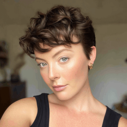 If you’ve got natural waves or curls, this pixie is such a fun way to show them off. The extra volume on top gives the cut personality and makes it look full and bouncy.